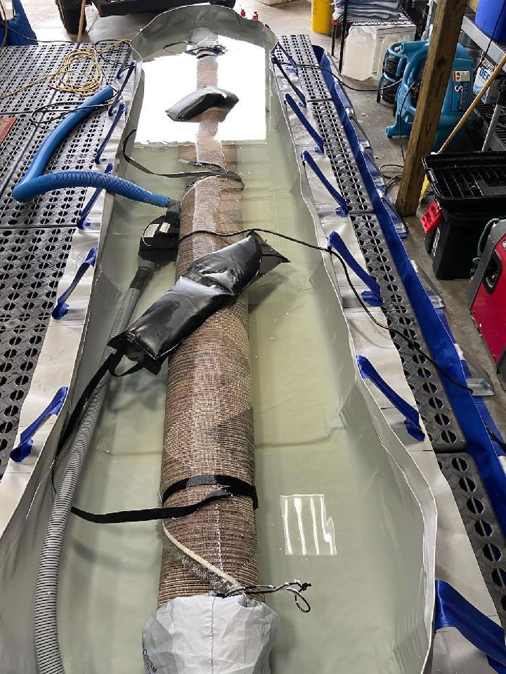The rug is then rolled up using a state of the art tool appropriately named “The Rug Sucker”. This device is a tube with thousands of tiny vacuum ports that allows us to rinse the rug with clean water and remove most of the moisture from the rug. This step replaces the typical centrifuge which spins a rug at high velocity which opens the door to potential damage.